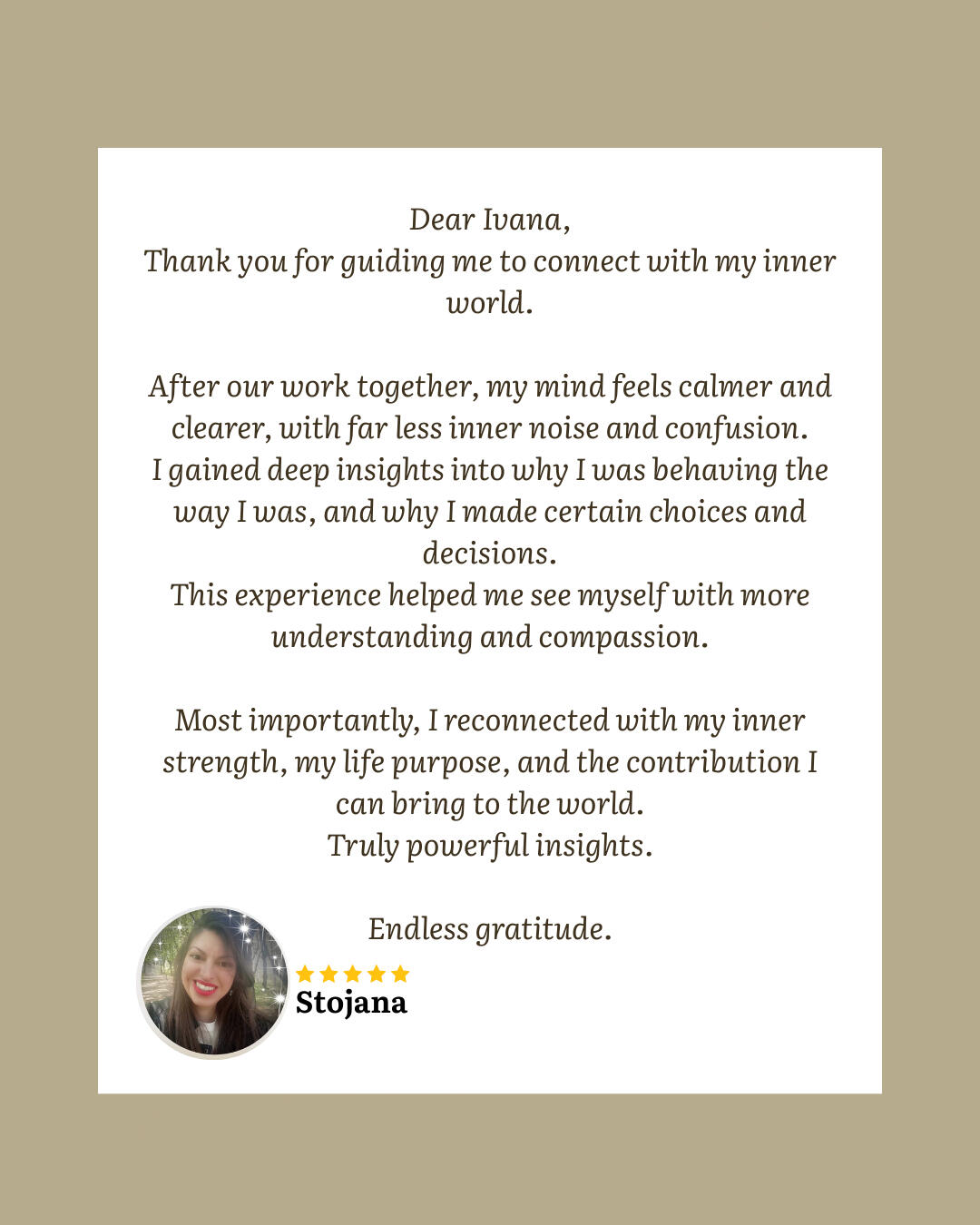 Hi, my name is Ivana Iskra Kovačević, and I am here to support you on your journey of self-discovery and returning to yourself.If you feel that somewhere in the noise of everyday life and meeting other people’s expectations you have drifted away from who you truly are - you are not alone.